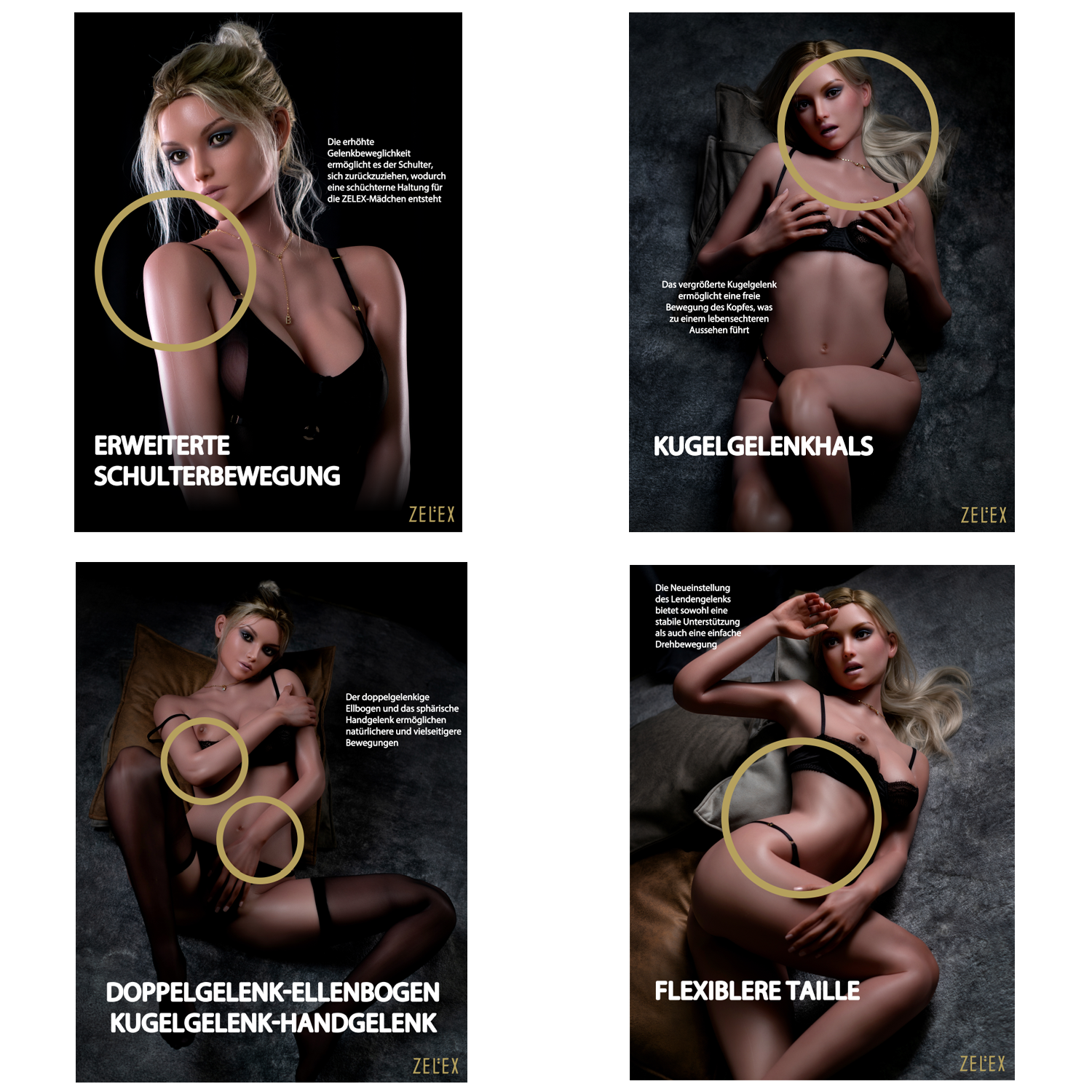 Zelex bietet Dir eine hochwertige Auswahl an Premium Sexpuppen der höchsten Güteklasse. Zelex ist mit einer der weltweit führenden Sexpuppen Hersteller und erfreut sich immer größerer Beliebtheit. Ob zum Liebesakt oder als Zuhörerin… Hier findest Du interessante Informationen und Fotos von Zelex.